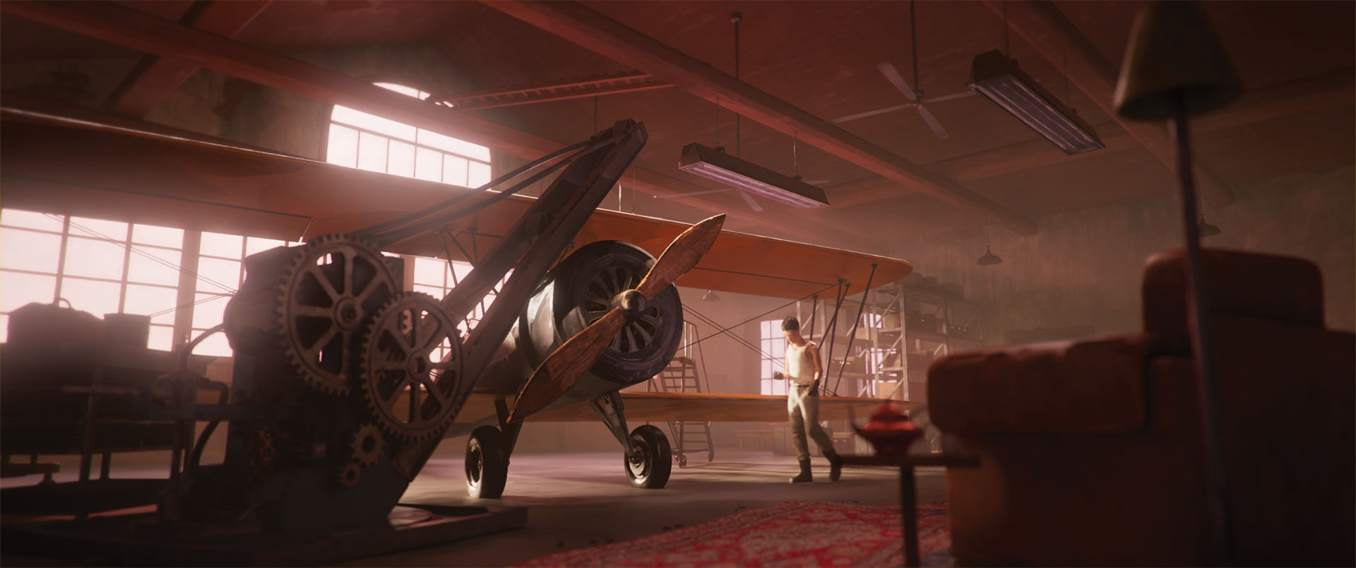 Echoes nous transporte dans une réalité onirique imprégnée par l’esthétique de la Grande Dépression des années 1930. Dans ce monde aux horizons voilés par une guerre métaphorique et intemporelle, Karim, un jeune mécanicien dévoué, s’accroche au dernier vestige de sa lignée : le vieil avion familial. De son atelier défraîchi, une dispute éclate et brise brusquement la routine fraternelle. Le crash qui suit ne laisse derrière lui que des débris et un deuil insurmontable.