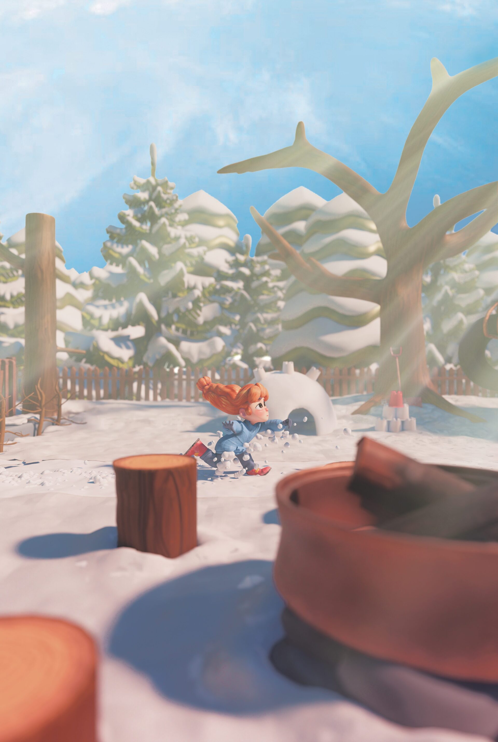 Sno Day est un court-métrage en 3D d’une minute et demie mettant en scène Eri, une petite fille de dix ans, lors d’une froide journée d’hiver. Après avoir construit un bonhomme de neige, une rafale emporte son écharpe et l’entraîne malgré elle plus loin dans la forêt. Perdue et effrayée, Eri ignore que son bonhomme de neige, Sno, prendra vie pour partir à sa recherche et la secourir. À travers cette aventure simple et touchante, le film explore la naissance d’une amitié inattendue dans un univers stylisé.