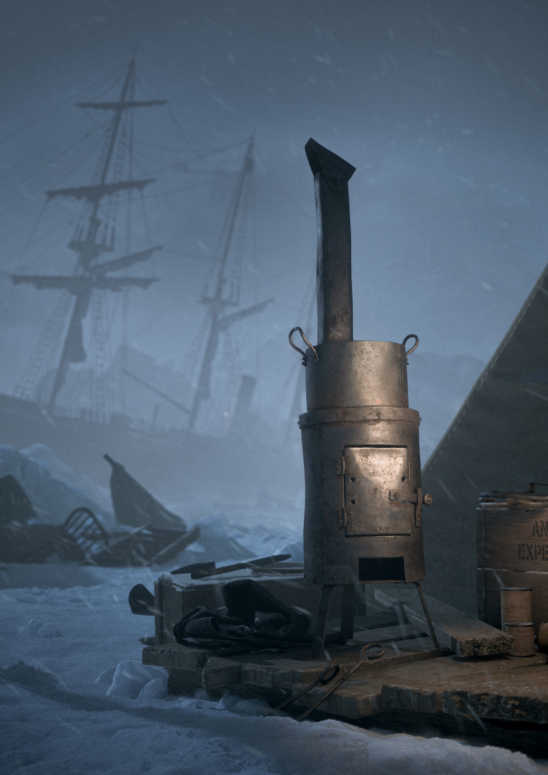 S’inspirant de récits et de faits réels issus de l’âge héroïque de l’exploration polaire, le projet examine la dégradation progressive, tant physique que morale, d’un équipage confronté à l’isolement, à la faim, à la culpabilité et aux conditions extrêmes du climat de l’Antarctique.