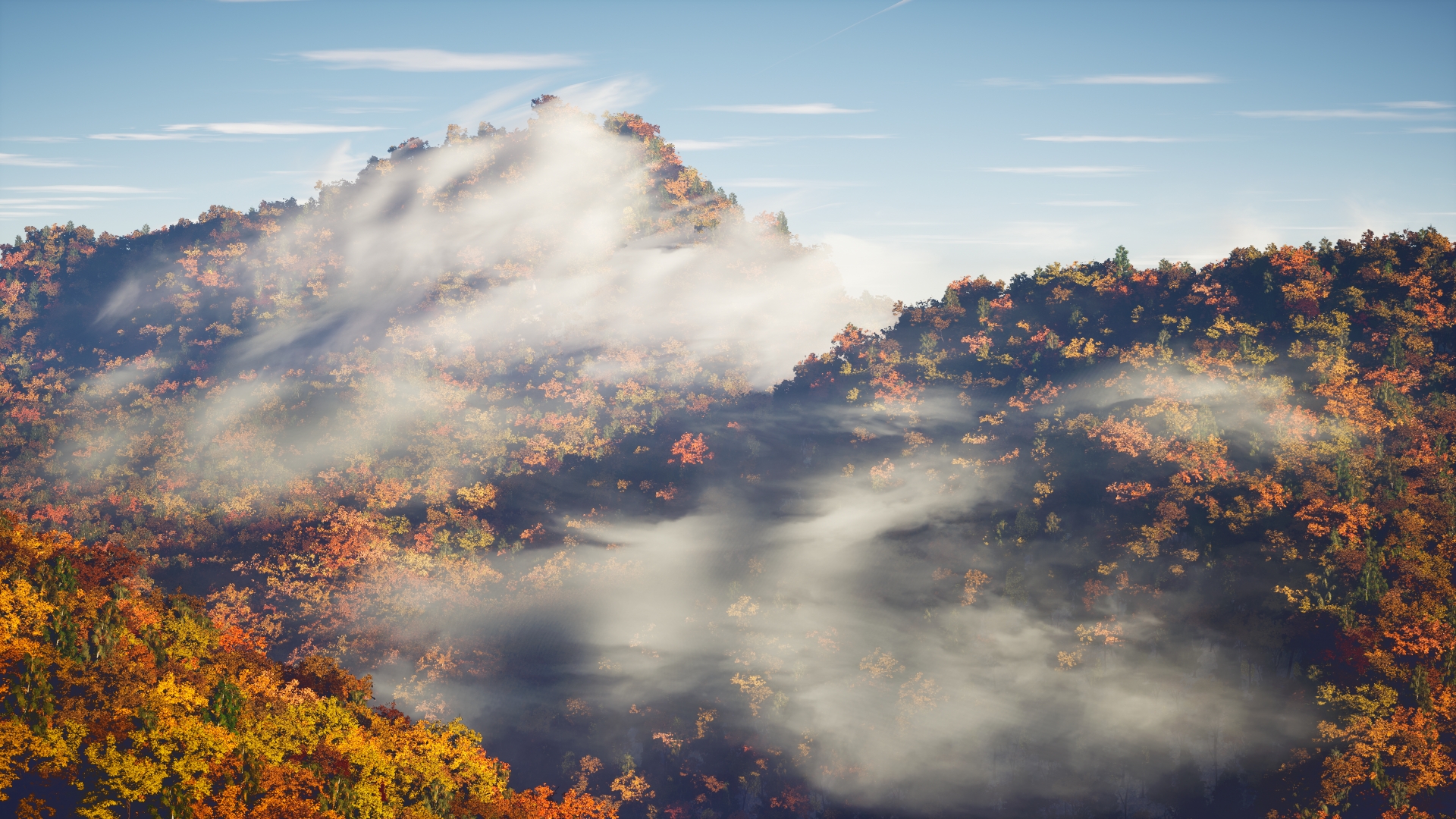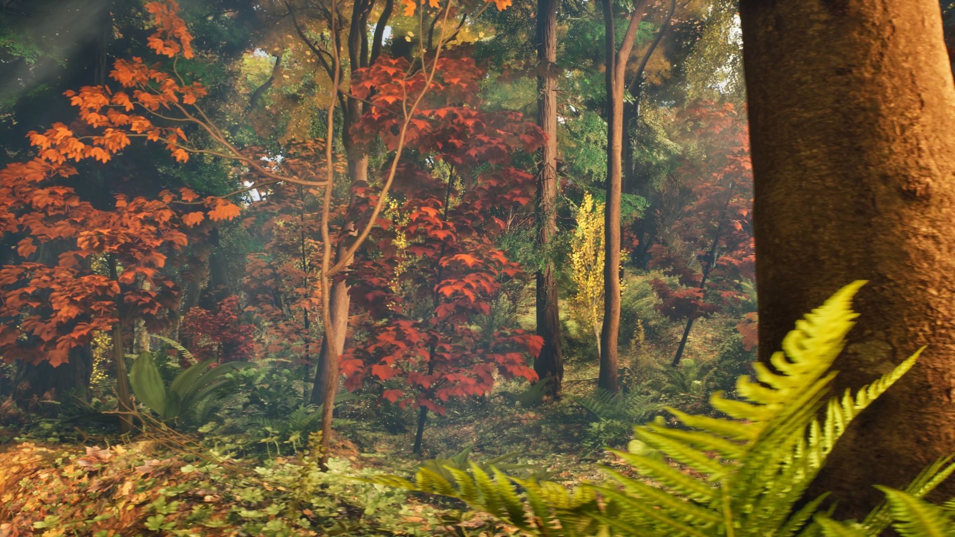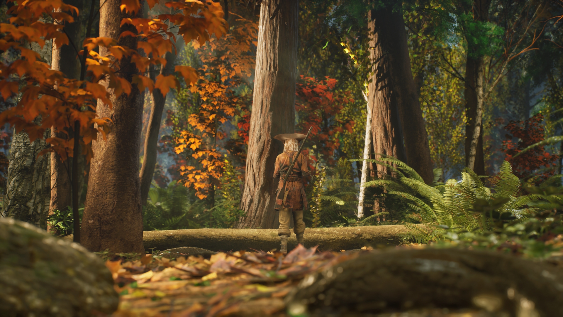 La scène s’ouvre sur un paysage automnal typique du Québec : un vent froid agite les feuilles rouges et dorées, les arbres craquent, et la lumière dessine les ombres au travers des branches. La forêt boréale est non seulement vaste, mais elle est aussi opaque et indifférente à la présence humaine. Chaque pas de Clément résonne dans cette atmosphère presque irréelle.